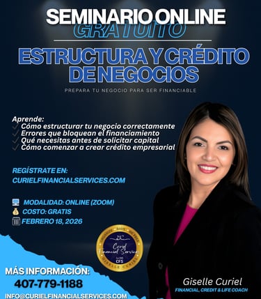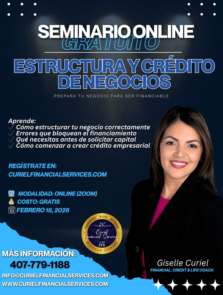 Únete a este seminario educativo donde aprenderás fundamentos clave para estructurar tu negocio correctamente y comprender los principios del crédito empresarial.